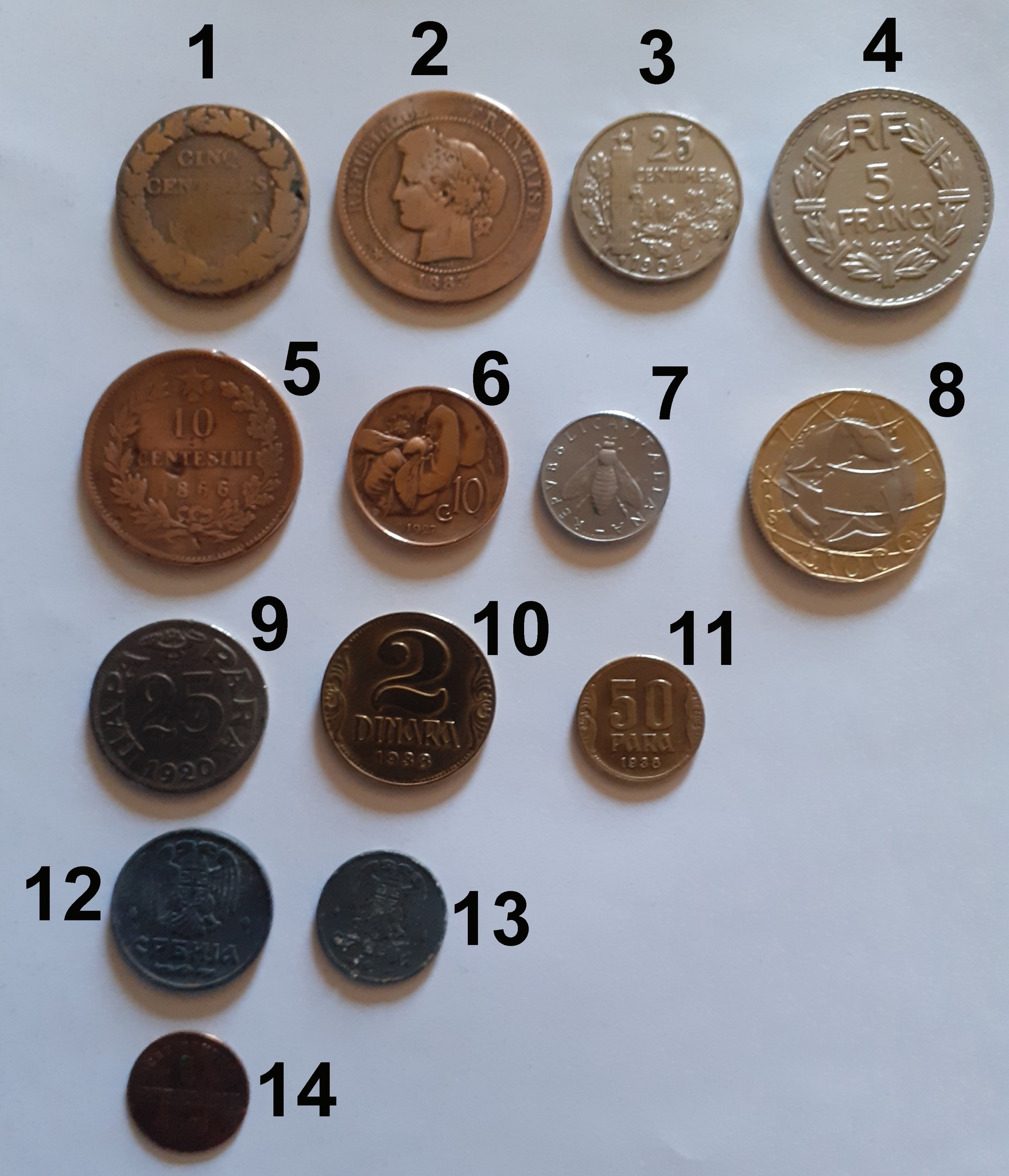 | Münzkonvolut 1799 - 1955 - Frankreich, Italien, Jugoslawien, Königreich Bayern (14 Bilder) |