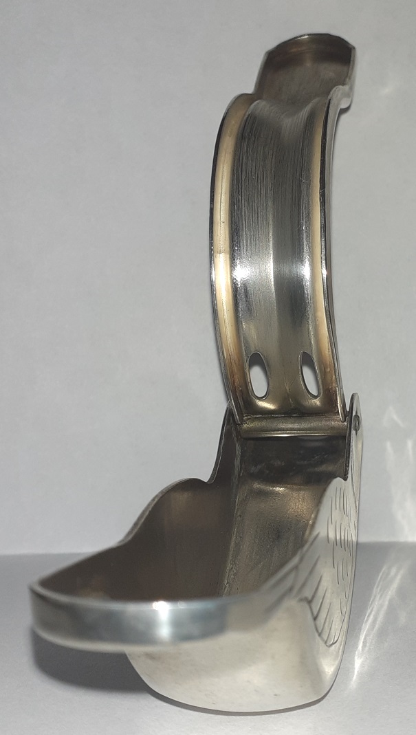 Anzumerken ist, dass sich hinsichtlich der Schichtdicke der Versilberung keinerlei Angaben finden lässt (z.B. eine gepunzte 80, 90 etc.), wie es z.B. auf versilbertem Besteck üblich ist. Dass eine Versilberung vorhanden ist ergibt sich jedoch unzweifelhaft sowohl aus der Farbe, insbesondere aber aus dem Zustand zum Zeitpunkt des Erwerbs, der den typischen dunkel angelaufenen Zustand silberner oder versilberter Gegenstände ohne Rhodinierung zeigte (vgl. Abb. 5) und sich erwartungsgemäß auch leicht mit dem entsprechenden Silberreinigungsmittel entfernen ließ.