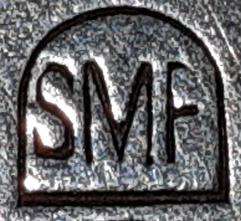 Die Zuordnung zu einem Hersteller war erst möglich durch die Entdeckung eines auf einer Auktionsplattform angebotenen Exemplar, das auch mit M bzw. Mußbach gestempelt war. Hierüber ließ sich dann die Verbindung zum damaligen Unternehmen "Süddeutsche Metallwarenfabrik" herstellen.